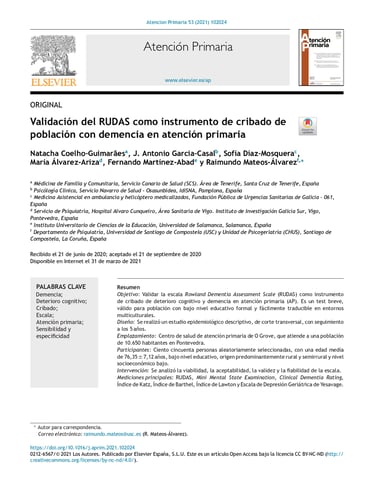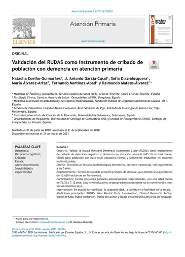 Validación del RUDAS como instrumento de cribado de población con demencia en AP